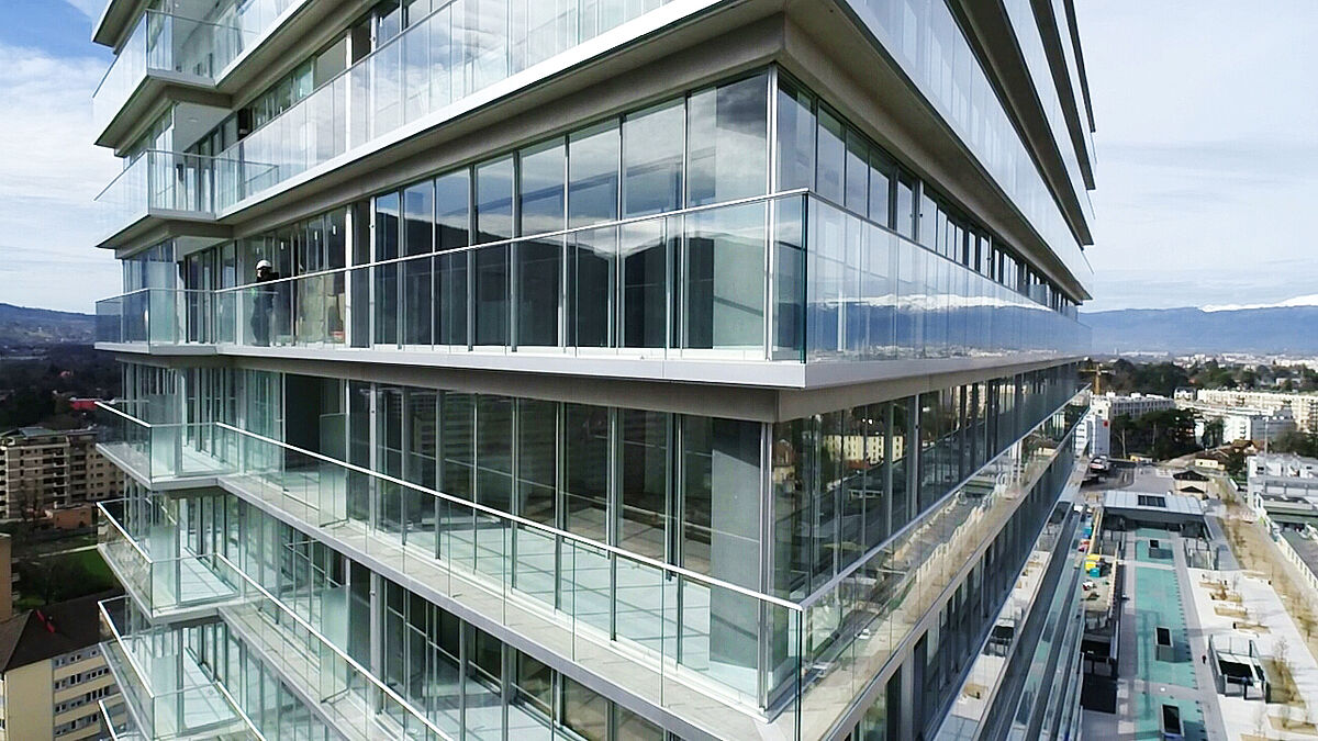 3000 m Ganzglasgeländer am Turm Opale in Chêne-Bourg