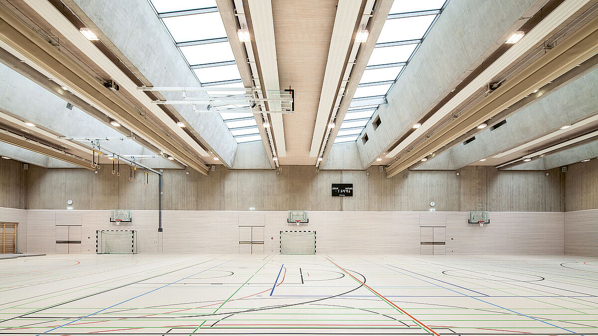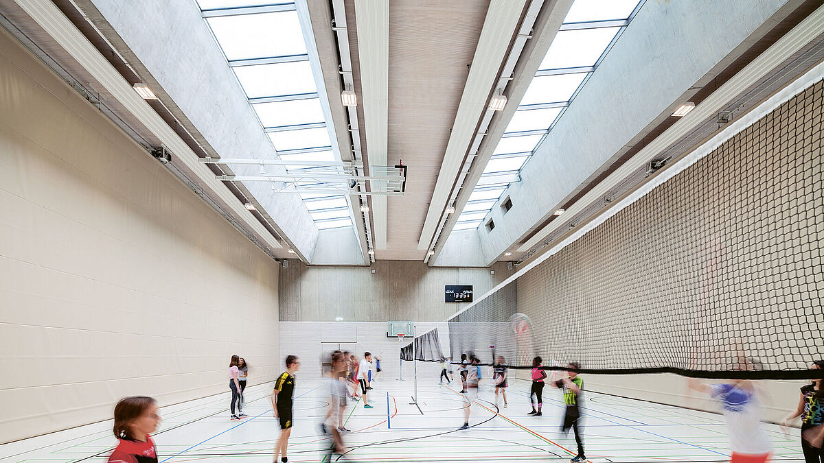3D-Isolierglas mit Sonnenschutzraster für die Sporthalle