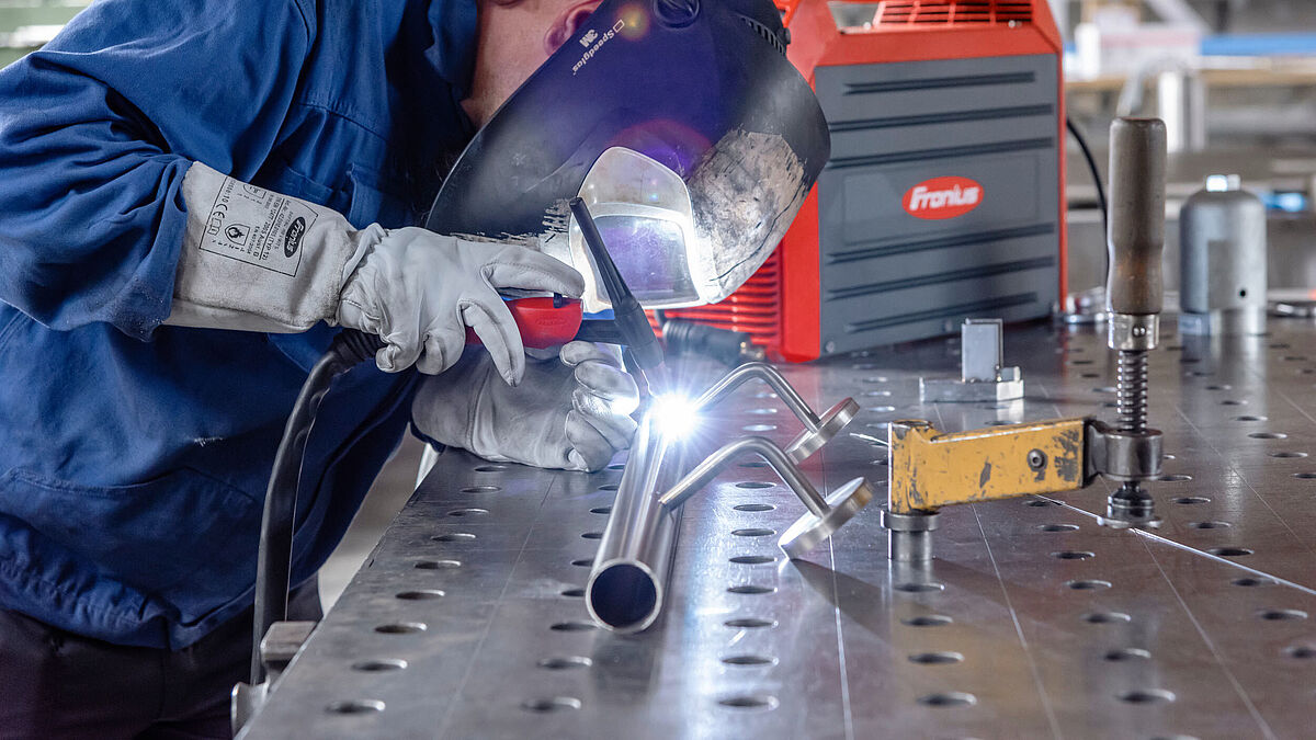 «Auch für mobile Fertigstellungsarbeiten greifen wir auf Fronius-Geräte zurück», fährt der Schweisswerkmeister fort. Kleinere Heftungsarbeiten an Treppengeländern löst man schnell und unkompliziert mit der TransPocket. Geht es jedoch darum, vorgefertigte Handläufe mittels hochqualitativer Sichtnähte zu verbinden, greifen die Monteure gerne zur TransSteel 2200: «Bei solchen Arbeiten müssen wir aufgrund der Nahtoptik unbedingt WIG-schweissen.»
