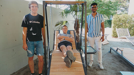 Während des Apéros hatten nun die interessierten Besucher die Gelegenheit, die Liegen von Nahem zu besichtigen. Dabei konnte allerlei Spannendes bestaunt werden: von LED-Lämpchen über den Weinkühler oder den ausfahrbaren Beistelltisch bis hin zur Schaukel. Unterbrochen wurde der Apéro für die Publikumswahl der besten Liege. Die Besucher gaben ihre Stimmzettel ab und erkoren so die Gewinner. Die Wahl für sich entscheiden konnte die Gruppe mit Ueli Ott, Livio Camenzind und Inthujan Balasubramaniam mit einer Liege- Schaukel, der sie den Namen «Bali» kurz für «baumeln» und «liegen» gaben.