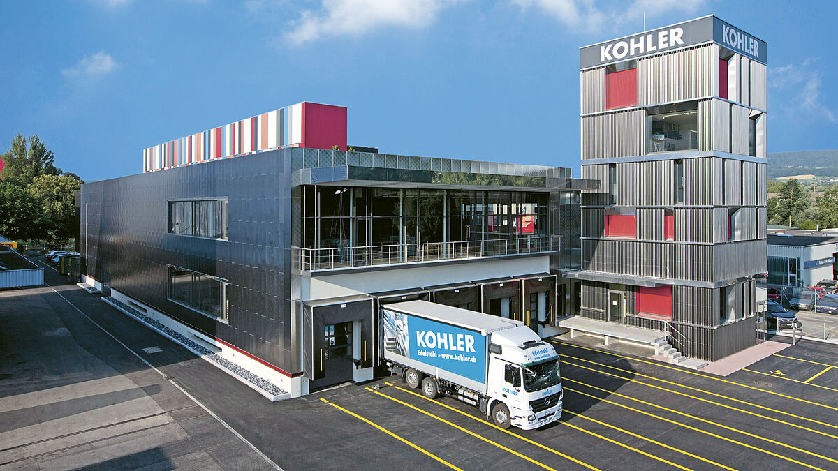 Überzeugt von ihren eigenen Produkten hat die Hans Kohler AG für die Gebäudehülle ihrer eigenen, neuen Logistikhallen in Dietikon aus ökologischen und gestalterischen Erwägungen Edelstahl gewählt. Berücksichtigt man die Life-Cycle-Kosten gegenüber Aluminium oder Stahlblech, ist dies die günstigste Lösung. Daneben sind die Fassaden auch ästhetisch sehr ansprechend und funktional.