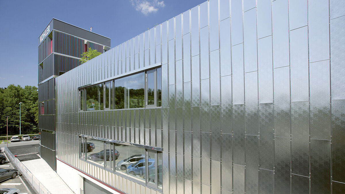 Edelstahlbleche mit dekor- oder mustergewalzten Oberflächen ermöglichen Architekten beim Bau von Fassaden einen enormen Gestaltungsfreiraum. Unterschiedliche Walzungen und verschiedene Farben erzeugen tolle Effekte. Dies machte sich die Hans Kohler AG, die Handelsunternehmung für Edelstahl, beim Bau ihrer eigenen Logistikhallen zu Nutze und erntete damit im Industriegebiet Dietikon viel Lob von verschiedensten Seiten.