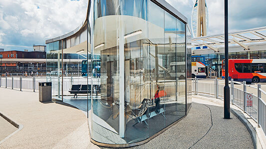 Mit dem neuen «The Hard Interchange» bietet Portsmouth Besuchern wie Bewohnern heute einen zeitgemässen, repräsentativen und sicheren Empfang. An historisch und kulturell bedeutsamer Stelle ist eine einladende bauliche Landmarke entstanden, die nicht zuletzt dank des gekonnten Einsatzes modernster Glasfertigungstechnologien gestalterisch überzeugt.