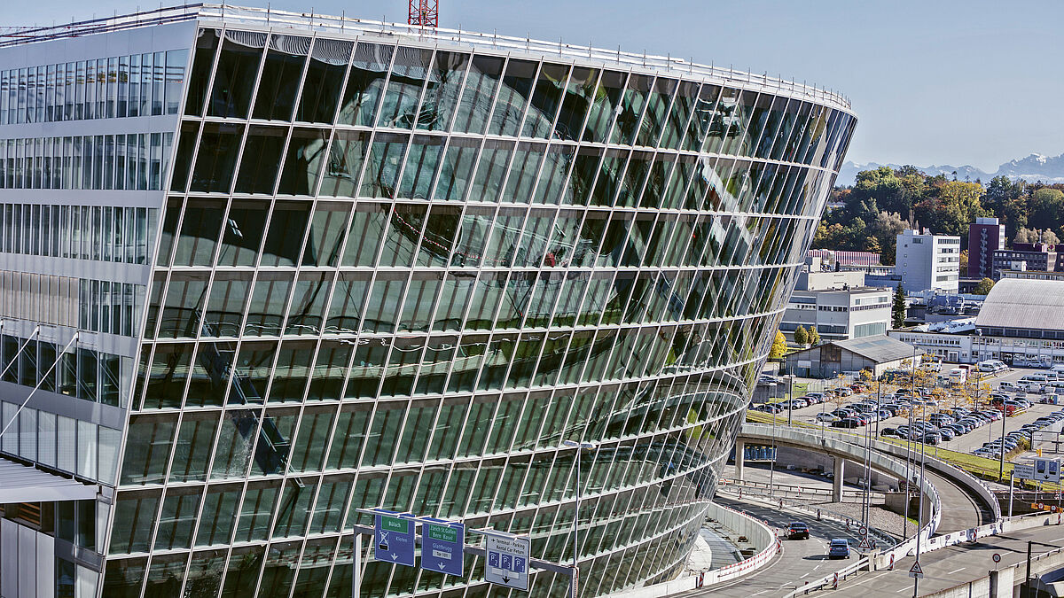 Geneigte, gebogene Closed-Cavity-Fassaden am «Circle»