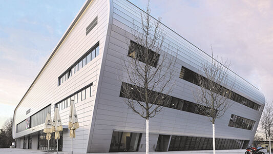 Die Ballsportarena Dresden ist ein Paradebeispiel dafür, dass die Kriterien für eine Ballsporthalle mit multifunktionalem Anspruch und täglichem Betrieb miteinander vereinbar sind und keinen Widerspruch darstellen. Innerhalb der baulichen Umsetzung ergeben sich dadurch jedoch erhöhte Anforderungen beispielsweise an Schallschutz, Akustik und Brandschutz. Durch den Einsatz von FF2 ist es nicht nur möglich, den Kriterien an eine nachhaltige Architektur gerecht zu werden, Novelis Farbaluminium FF2 erfüllt zudem diese sicherheitsrelevanten Voraussetzungen: Es ist nicht brennbar und gemäss DIN EN 13501 in der Baustoffklasse A1 eingestuft.