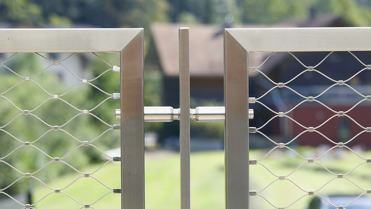 Bespannt sind die Rahmen mit Webnet der Maschenweite 40 mm und einem Seildurchmesser von 1,5 mm. Das Seilnetz besticht durch seine hohe Lichtdurchlässigkeit und Eleganz und ist gleichzeitig sehr robust und langlebig. Die Masse der Rahmen und die Maschenweite des Webnet entsprechen den BFU-Empfehlungen für Geländer.