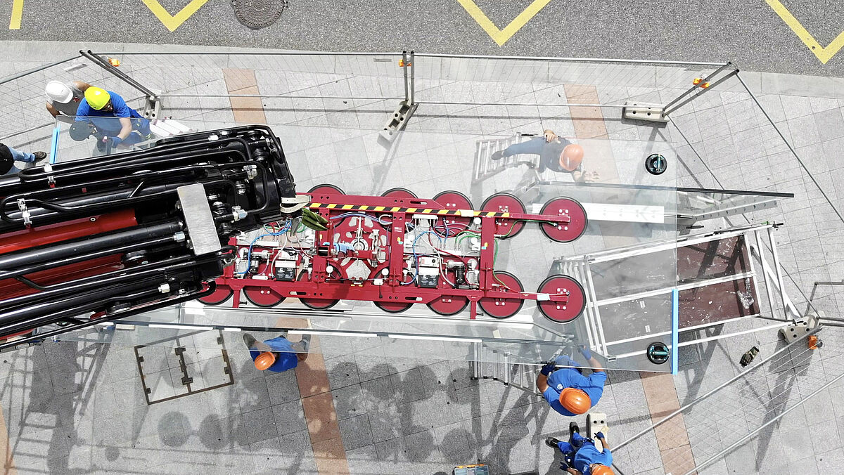 Fertigung, Transport und Aufbau der Verglasungen erforderten eine akribische Planung und den Einsatz geeigneter Ausrüstungen: Dank der perfekten Koordination der Arbeit konnte jede Glasplatte und insbesondere das über 1100 kg schwere Flachdach millimetergenau manövriert und platziert werden. Alle Arbeiten wurden völlig problemlos und in absoluter Sicherheit ausgeführt. ■