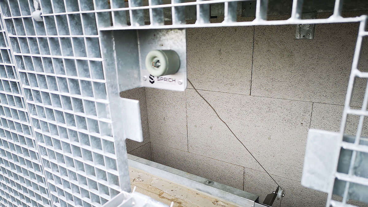 Diese Rauchklappe war eine besondere Herausforderung. Aufgrund der Isolation des Hauses musste die Rauchklappe nach unten verlegt werden – was eine 180-Grad-Öffnung bedingt und die Schliessung der Rauchklappe erschwert. Aus diesem Grund wurde eine Umlenkrolle mit verlängertem Arm für den Seilzug eingebaut. Dadurch lässt sich die Rauchklappe leicht schliessen und öffnen.