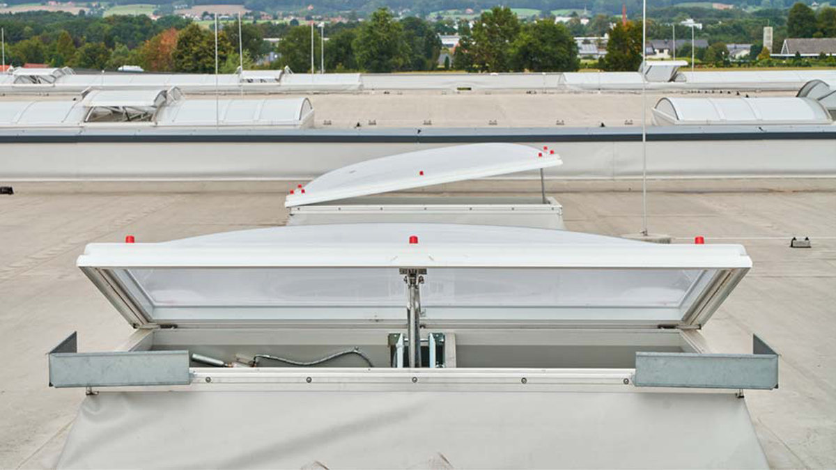 Oberlichter aus Kunststoffmaterialien sind überall dort sinnvoll, wo das Tragwerk keine schweren Lasten aufnehmen kann – besonders bei Sanierungen und weit spannenden Konstruktionen. Mit konfigurierbaren Systemen für Lichtbänder und Lichtkuppeln bietet VELUX Commercial optimale Lösungen zur grossflächigen Belichtung und um Tageslichtspots zu setzen.