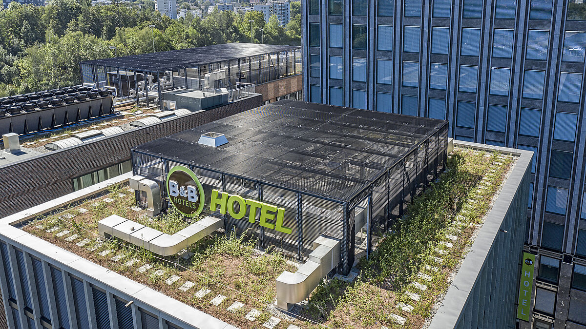 Les abris des installations techniques ont vocation à les dissimuler et les protéger tout en s’intégrant visuellement à l’environnement du bâtiment. Ils doivent également garantir une importante circulation de l’air afin que la centrale de chauffage ou de ventilation soit suffisamment alimentée en air frais. Le choix s’est ainsi porté sur les caillebotis pressés pour abriter les installations techniques de trois bâtiments à Zurich.