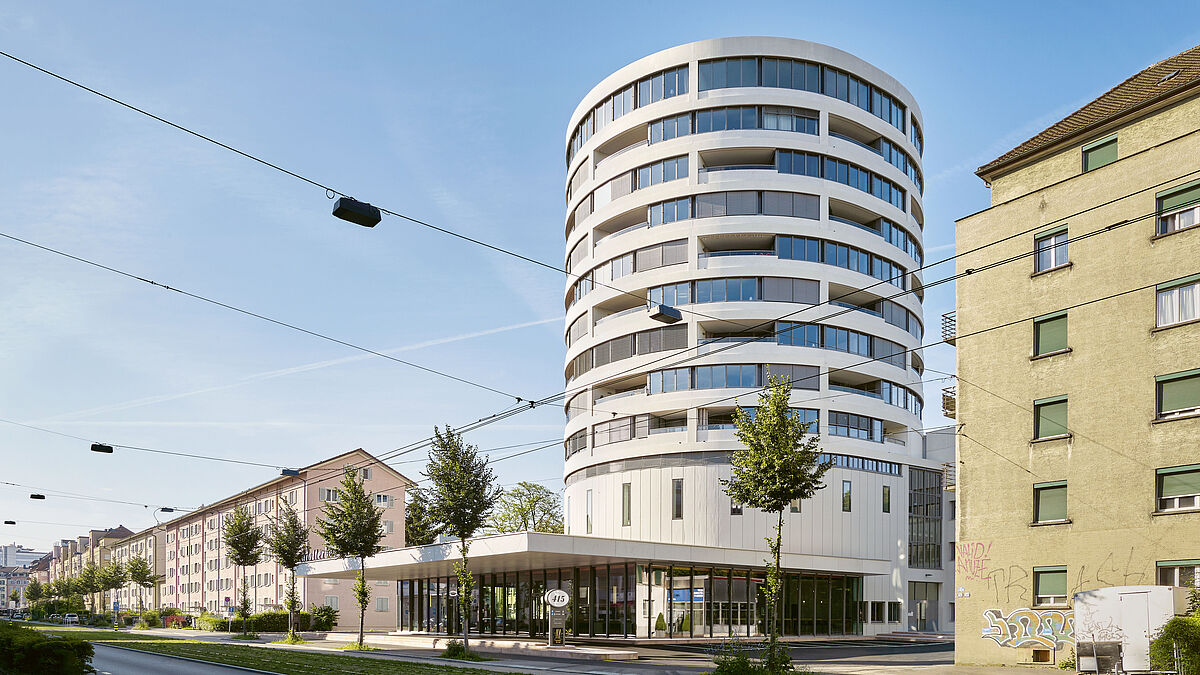« Les fenêtres de la tour circulaire ont été réalisées avec la fenêtre bloc en aluminium hautement isolante AWS 75 BS HI de Schüco ».